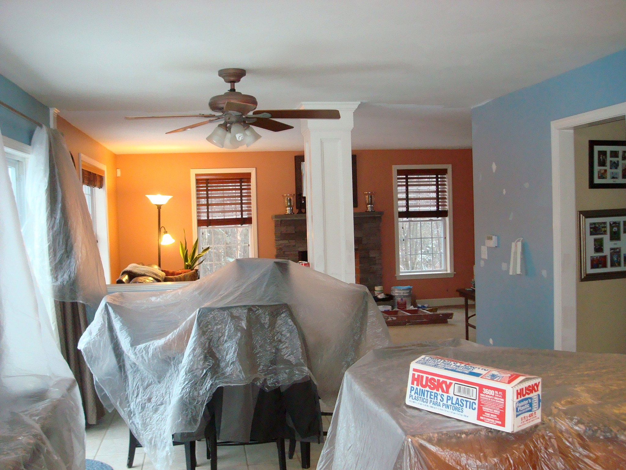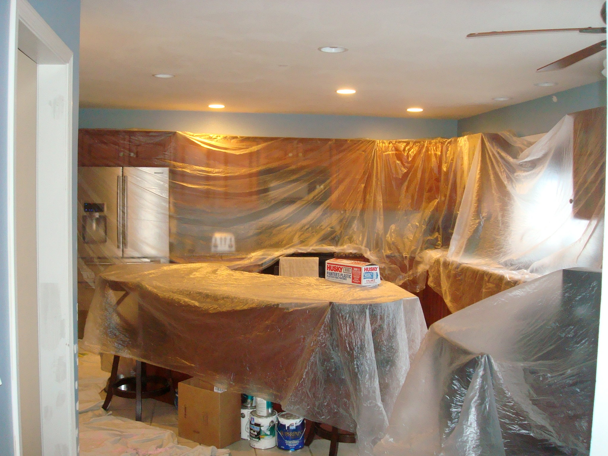 Floors and furniture are always protected with coverings to keep clean from any paint drips.